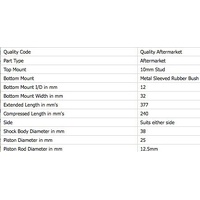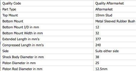 AFTERMARKET NON-GENUINE REPLACEMENT FRONT GAS SHOCK ABSORBERS